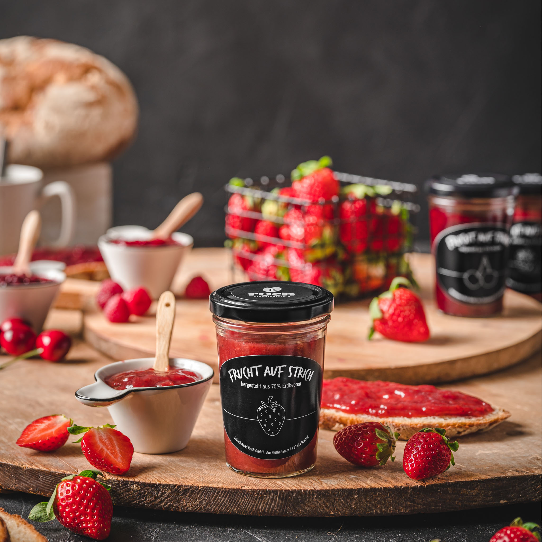Ob zum Sonntagsbrunch mit unseren leckeren Croissants oder als Geschenk mit einem unserer Gutscheine: Unser Fruchtaufstrich ist in jeder Situation ein echtes Highlight. Selbstgekocht aus frischen Erdbeeren von unserem Backstubenteam. Ein himmlisch-leckerer, fruchtig-frischer Genuss für Groß und Klein!